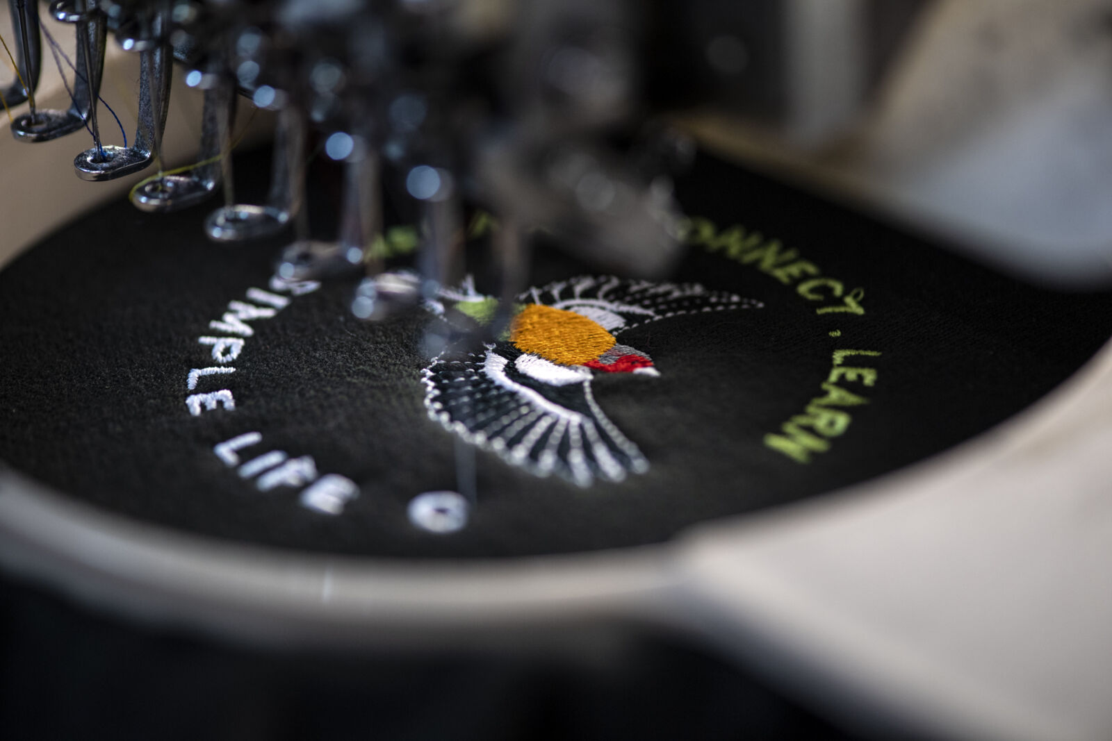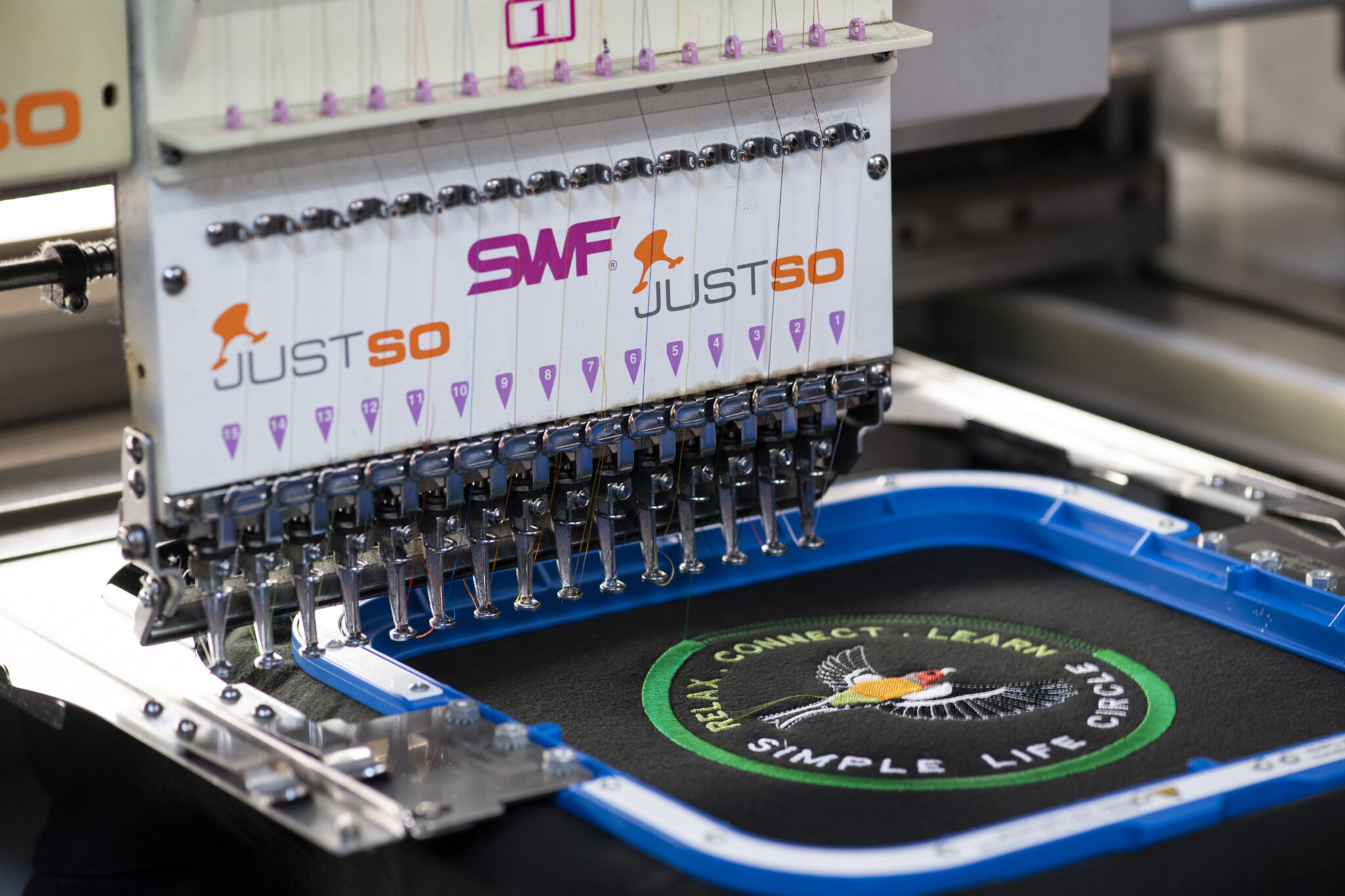 The digital file for each design is programmed into the embroidery machine by our expert team of machine minders and instructs it to produce the pattern in stitches onto the item. Our job management system clearly details which logos are needed where, for each job.